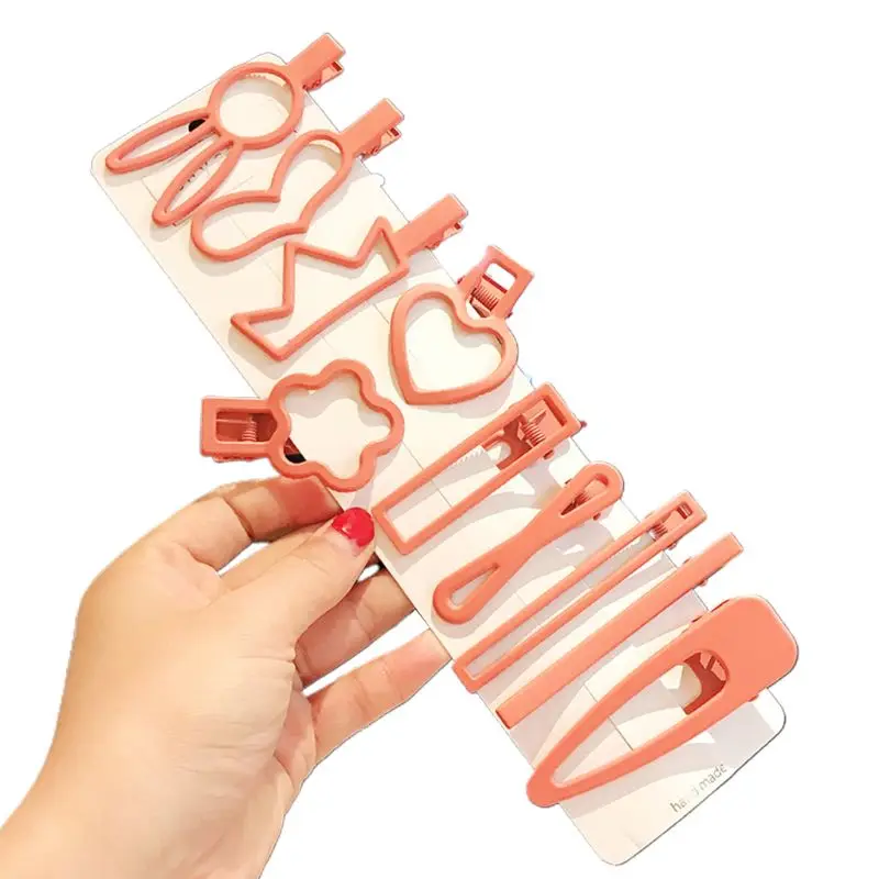 Special Offer 10Pcs Minimalistischen Geometrische Haar Clips Candy Farbe Matte Metall Alligator Haarnadeln Discount 65% Today!