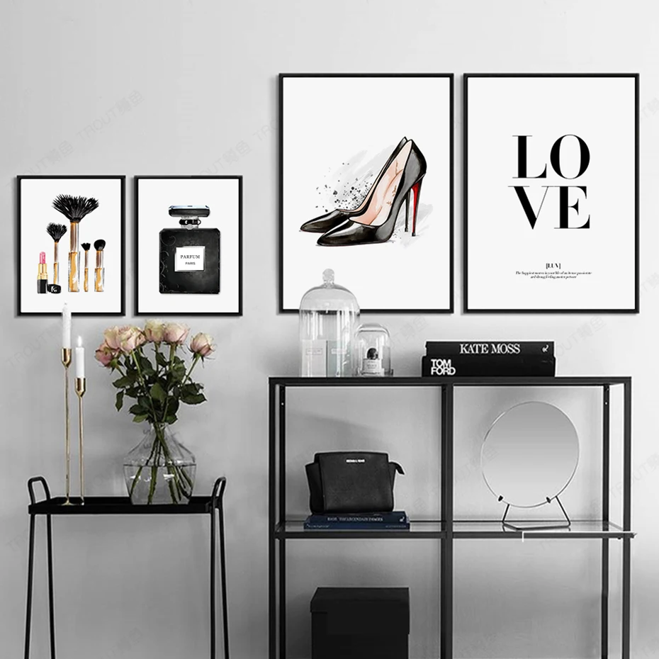 . (30% Rabatt) Kaufen Billig Leinwand Malerei Poster Auf Die Wand Kosmetik Schwarz Und Weiß Salon Mädchen Wand Kunst Bild Decorativos Wohnkultur Preise Online.