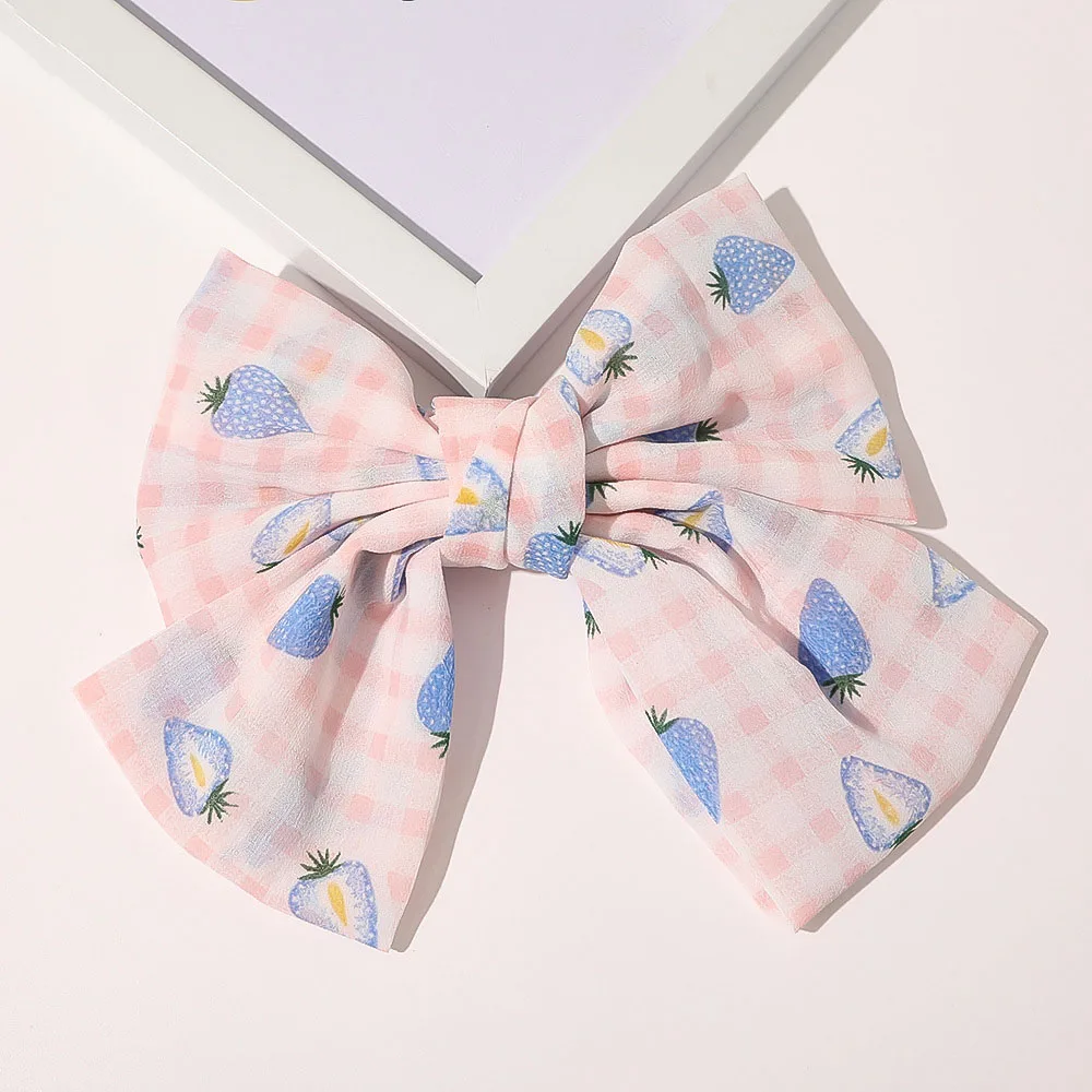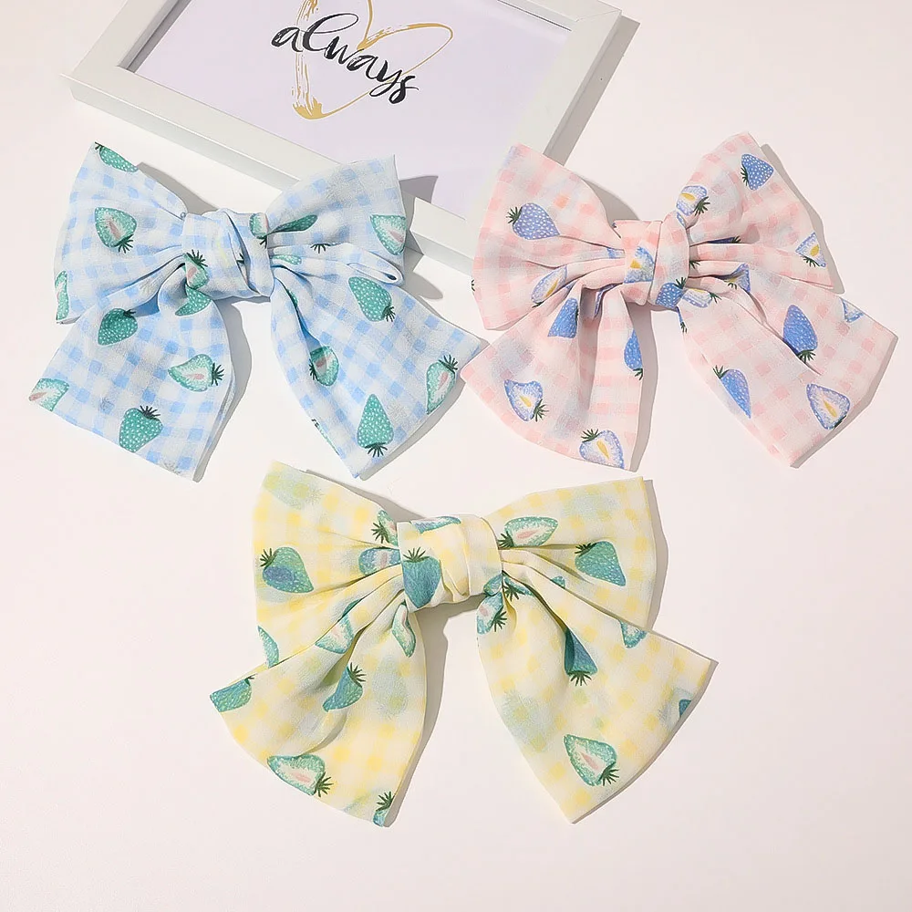 Special Offer Kawaii Koreanische Mode Große Haar Bögen Nette Erdbeere Muster Haarnadeln Metall Haarspange Übergroßen Bogen Knoten Grips Discount 25% Today!