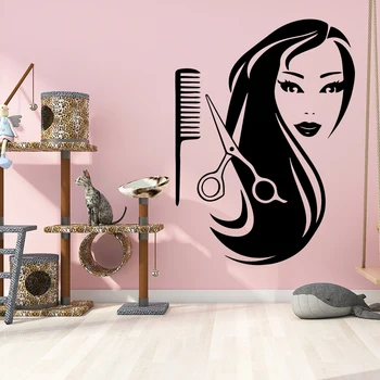 Special Offer Neue Design Aufkleber Frau Haar Salon Aufkleber Für Beauy Salon Barber Vinyl Tapete Frisur Wand Abziehbilder Aufkleber Wandbild Cheveux Discount 25% Today!