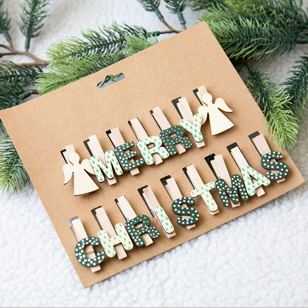 Special Offer 16/24 Stücke Frohe Weihnachten Clips Mini Frühling Holz Clips Kleidung Foto Papier Peg Pin Clothespin Handwerk Clips Partei Hause Dekoration Discount 19% Today!