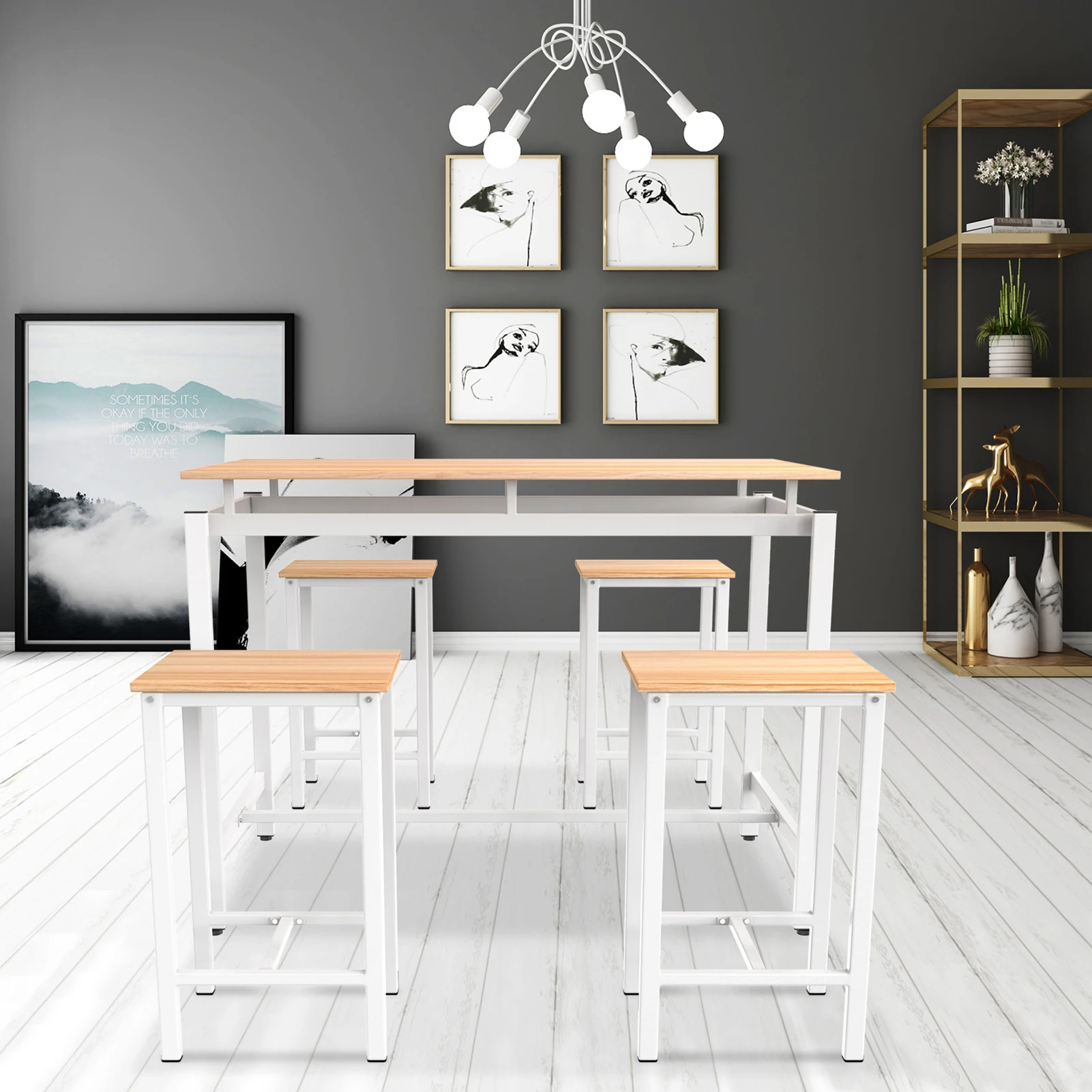 . (20% Rabatt) Kaufen Billig Esstisch Und Stuhl Set 4 Stühle Stühle 1 Tisch Metall Holz Wohnzimmer Küche Möbel Studio Schreibtisch Stuhl Set Büro Tisch Preise Online.