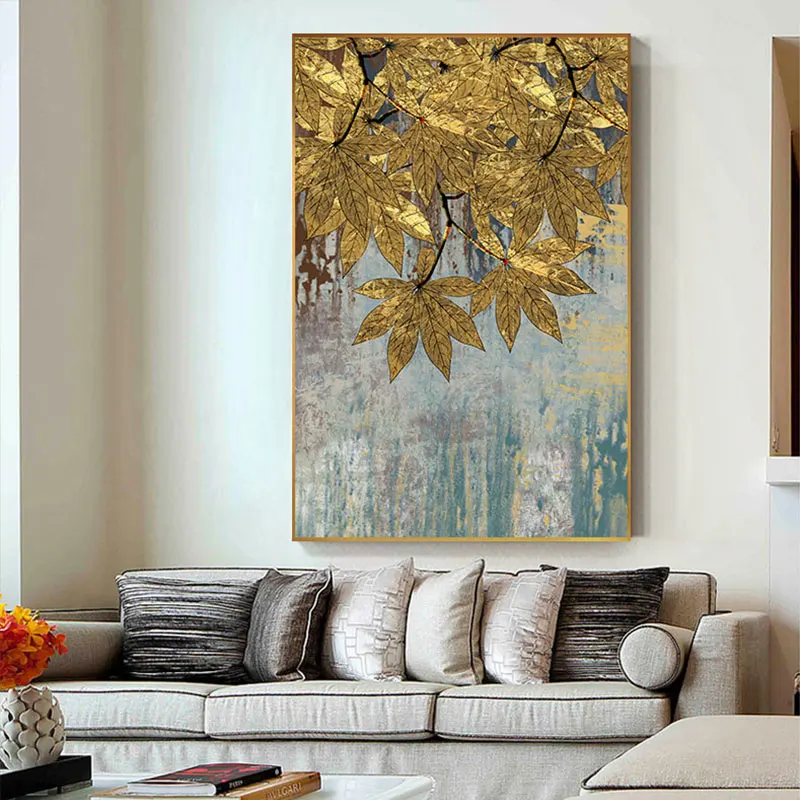 . (43% Rabatt) Kaufen Günstig Abstrakte Golden Leaf Malerei Tableaux Große Poster Print Grau Wand Kunst Für Wohnzimmer Eingang Gang Gold Cuadros Salon Triptychon Preise Online.