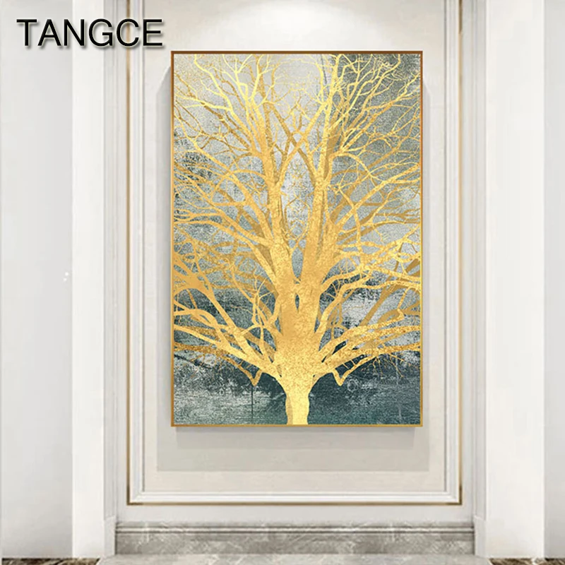 Special Offer Abstrakte Goldene Folie Baum Leinwand Malerei Tableaux Große Poster Druck Moderne Gold Wand Kunst F Wohnzimmer Cuadros Salon Decoracion Discount 43% Today!