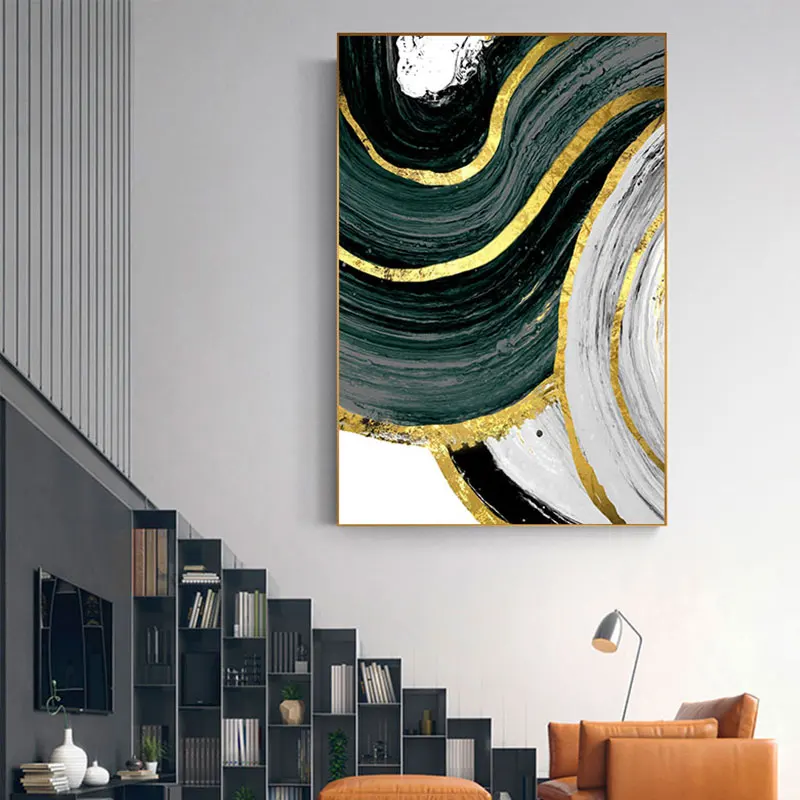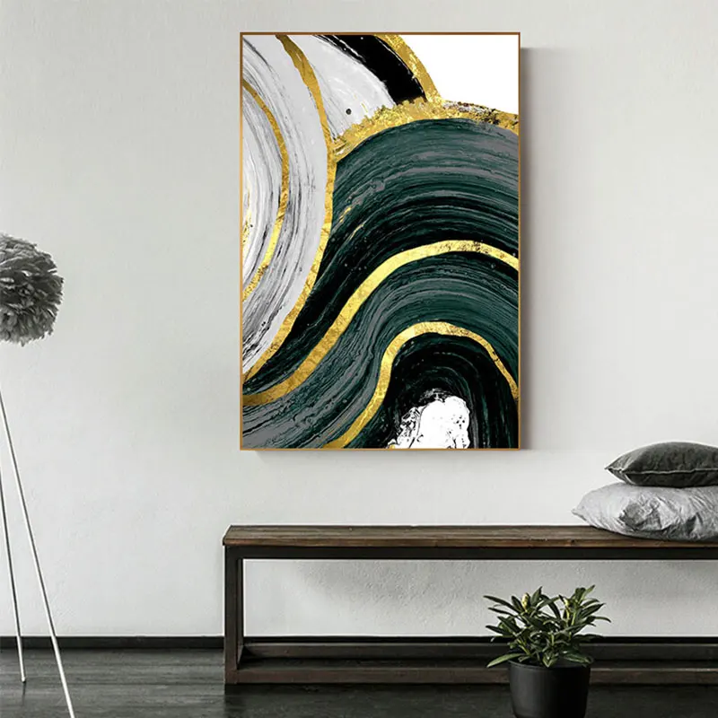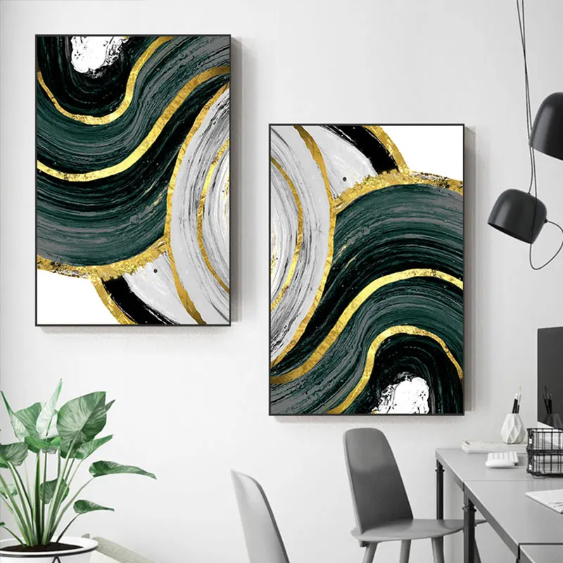 Special Offer Nordic Grün Goldene Folie Malerei Folie Poster Drucken Cuadros Moderne Wand Kunst Für Wohnzimmer HD Abstrakte Leinwand Kunst Tableau Salon Discount 43% Today!