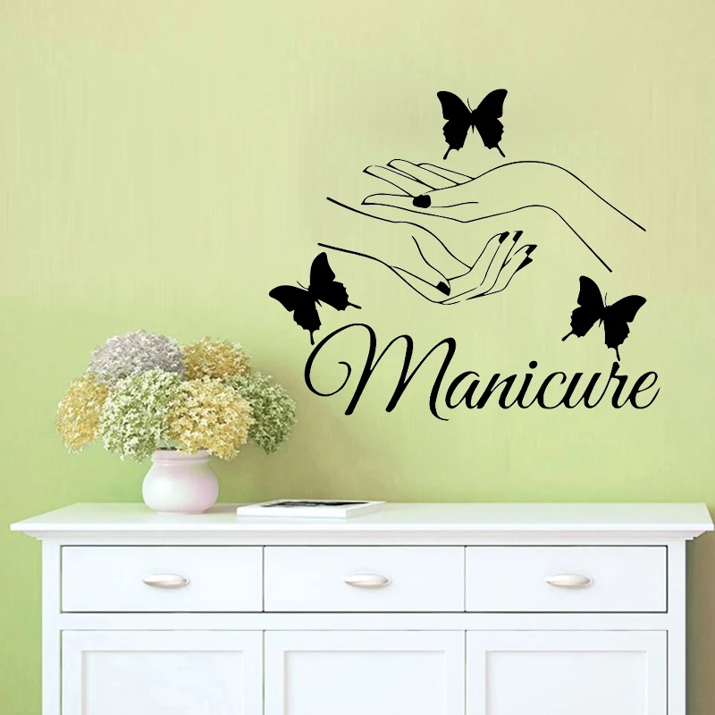 . (4% Rabatt) Kaufen Günstig Schönheit Nagel Salon Wand Aufkleber Maniküre Wand Abziehbilder Schmetterling Hände Zimmer Salon Dekoration Mädchen Schlafzimmer Decor Vinyl Kunst Wandmalereien Preise Online.