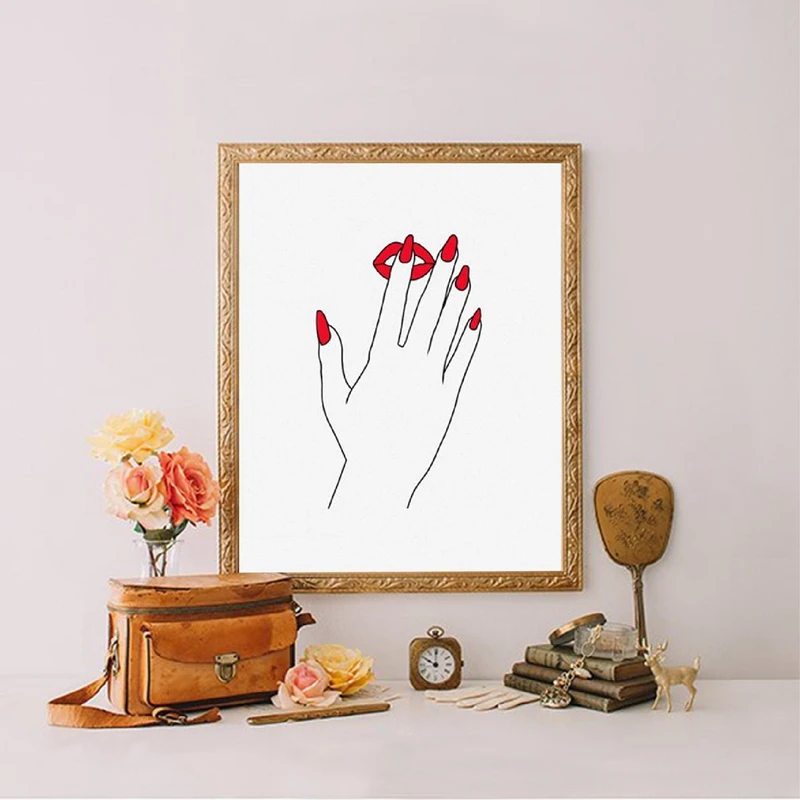 . (30% Rabatt) Günstige Kaufen Mädchen Rot Nägel Linie Hand Zeichnung Kunst Leinwand Malerei Manicurist Geschenke Nagel Salon Wand Kunst Poster Druckt Schönheit Salon Zimmer Wand D Preise Online.