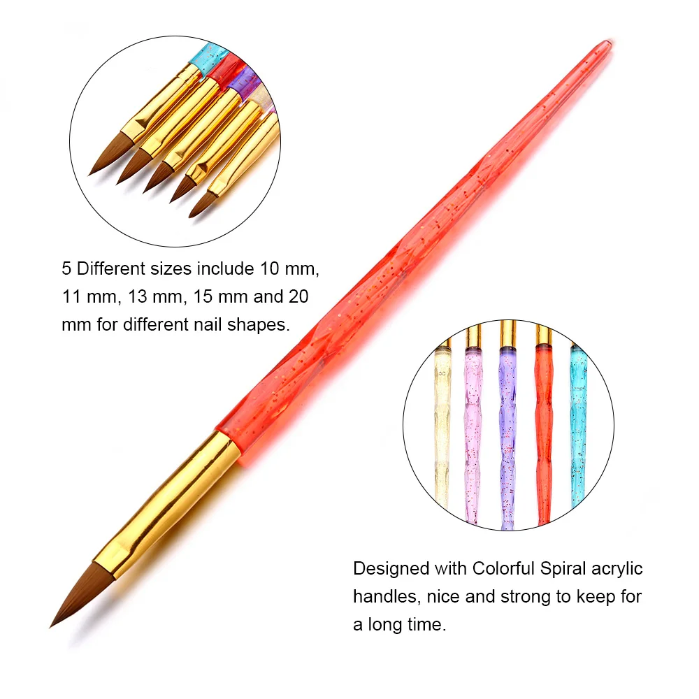 Special Offer 5 Teile/satz 10/11/13/15/20mm Nagel Kunst Acryl UV Gel Erweiterung Builder Acryl Pinsel Kristall Griff Maniküre Salon Werkzeuge Discount 30% Today!