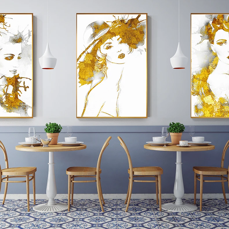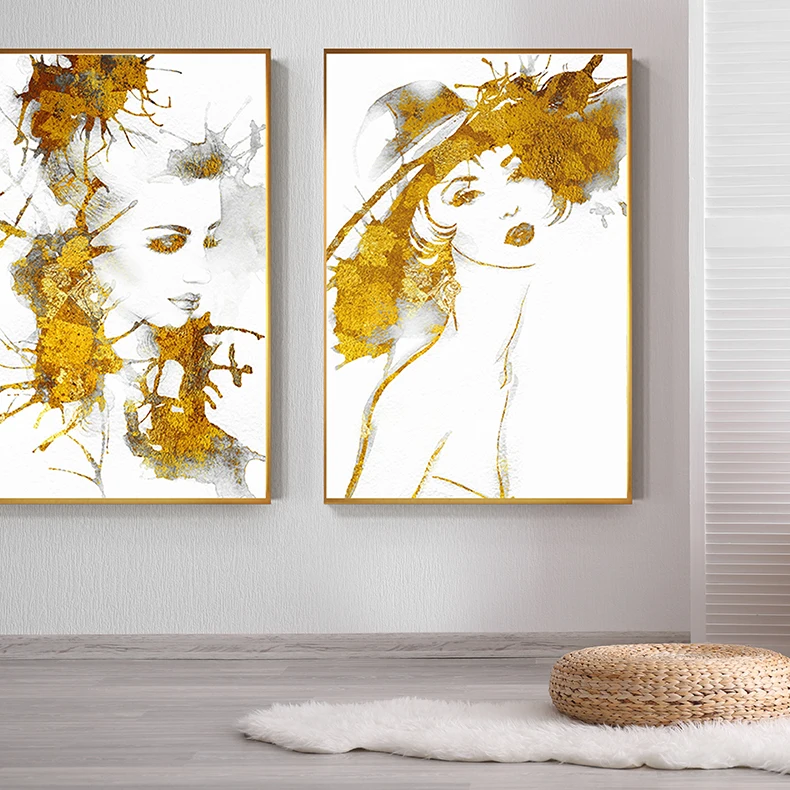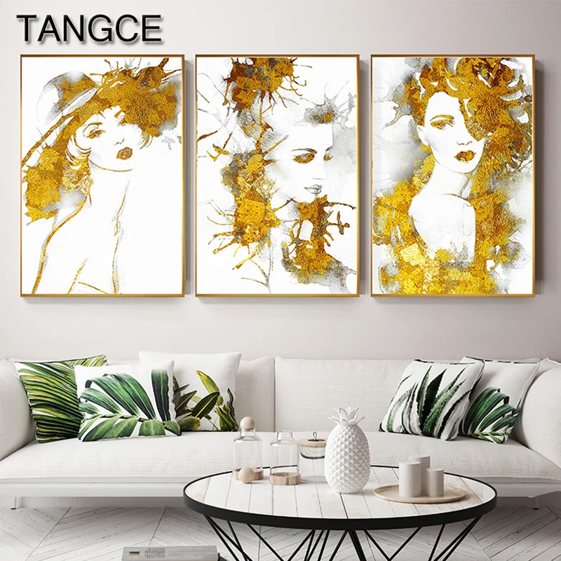 Special Offer Abstrakte Sexy Mädchen Leinwand Malerei Tableaux Große Poster Drucken Mode Wand Kunst Bilder Für Wohnzimmer Goldene Folie Cuadros Salon Discount 43% Today!