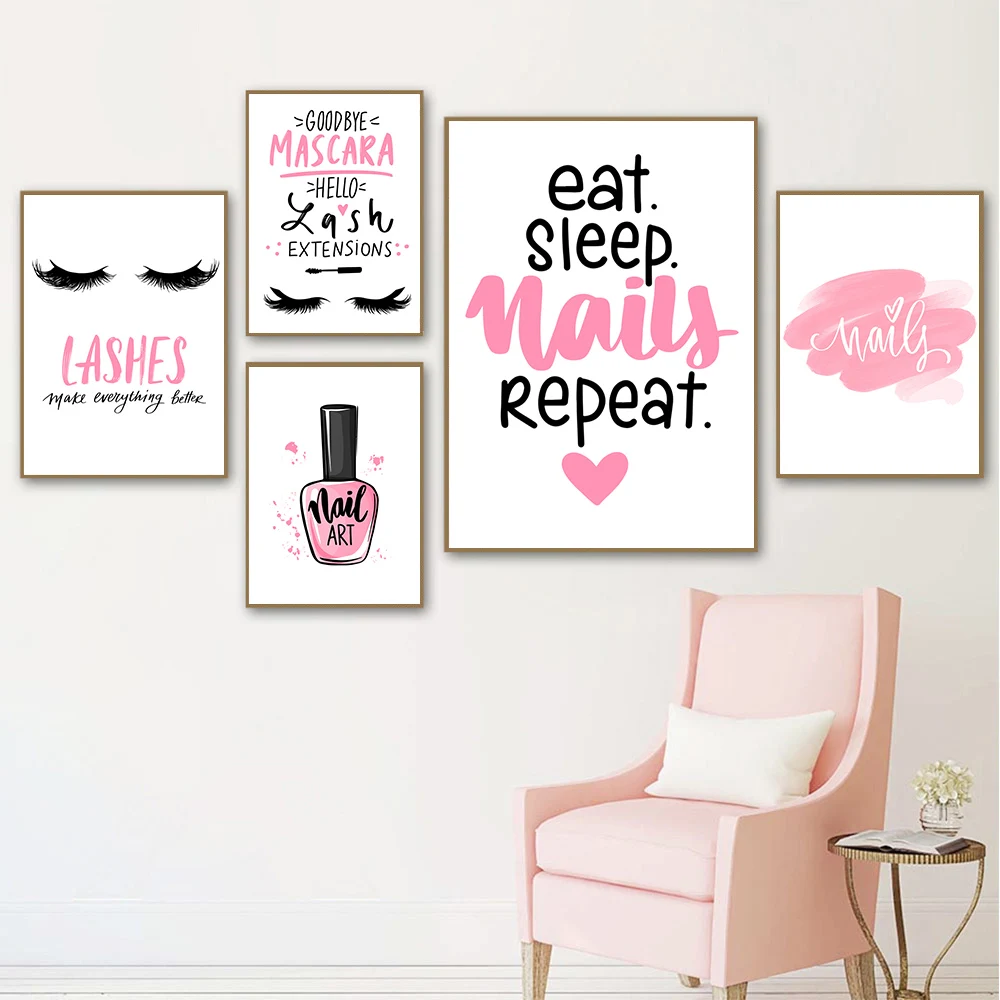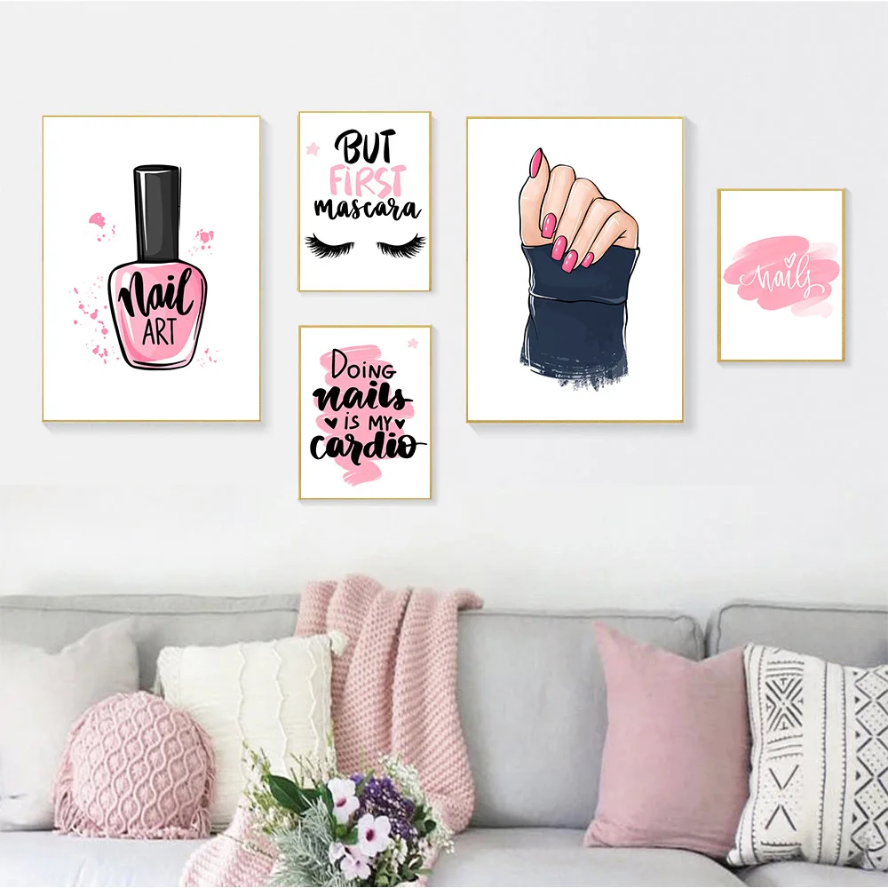 . (48% Rabatt) Günstige Kaufen Rosa Nagel Leinwand Drucken Poster Polnischen Wimpern Wand Kunst Malerei Mode Poster Nordic Wand Bilder Für Mädchen Zimmer Salon Decor Preise Online.