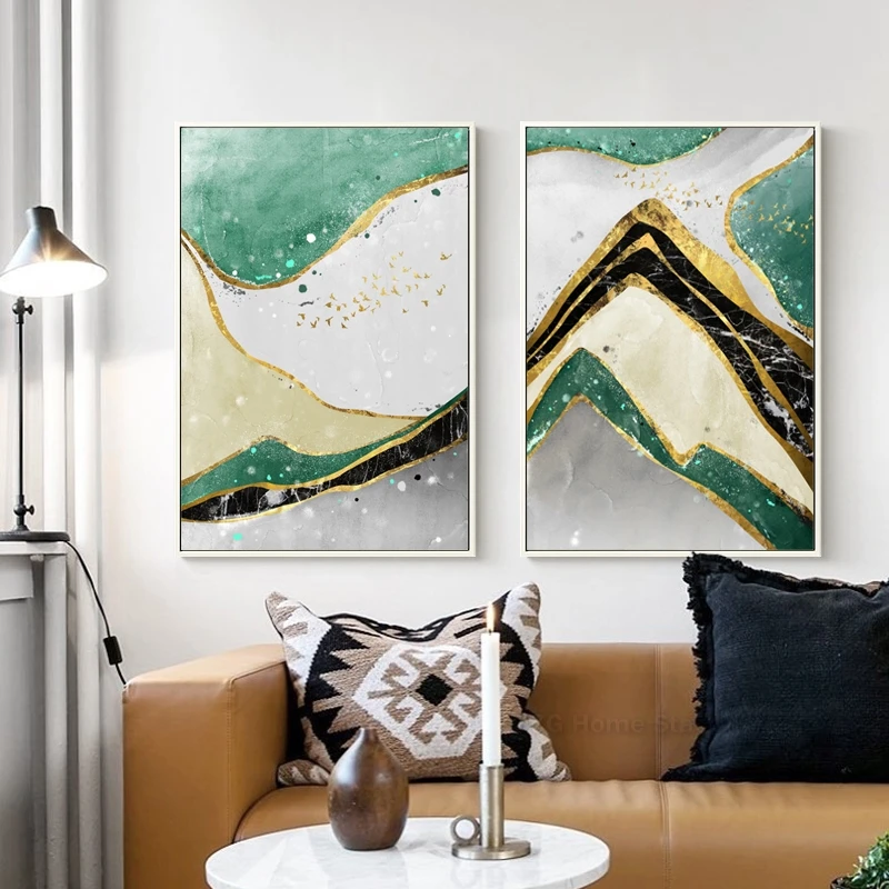 . (27% Rabatt) Günstige Kaufen Abstrakte Moderne Landschaft Golden Grau Grün Marmor Splash Kunst Leinwand Drucke Poster Für Salon Wohnzimmer Dekoration Preise Online.