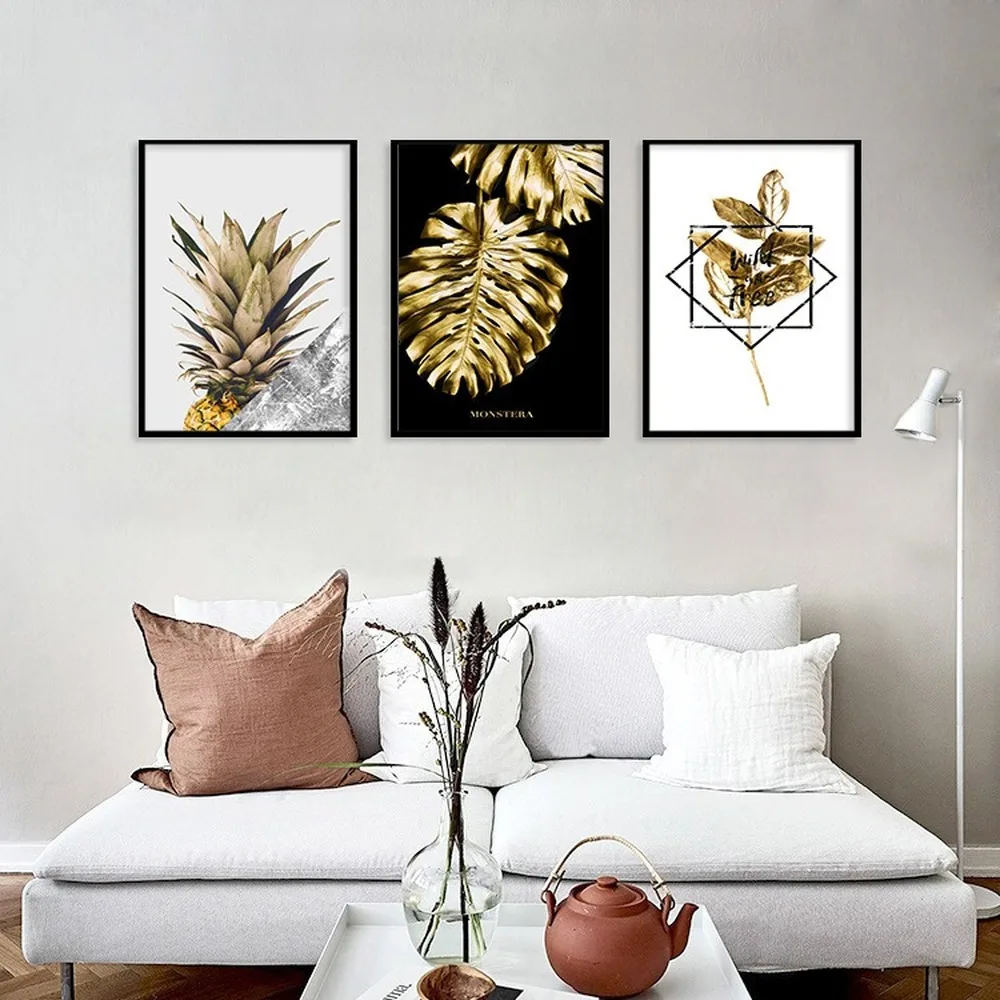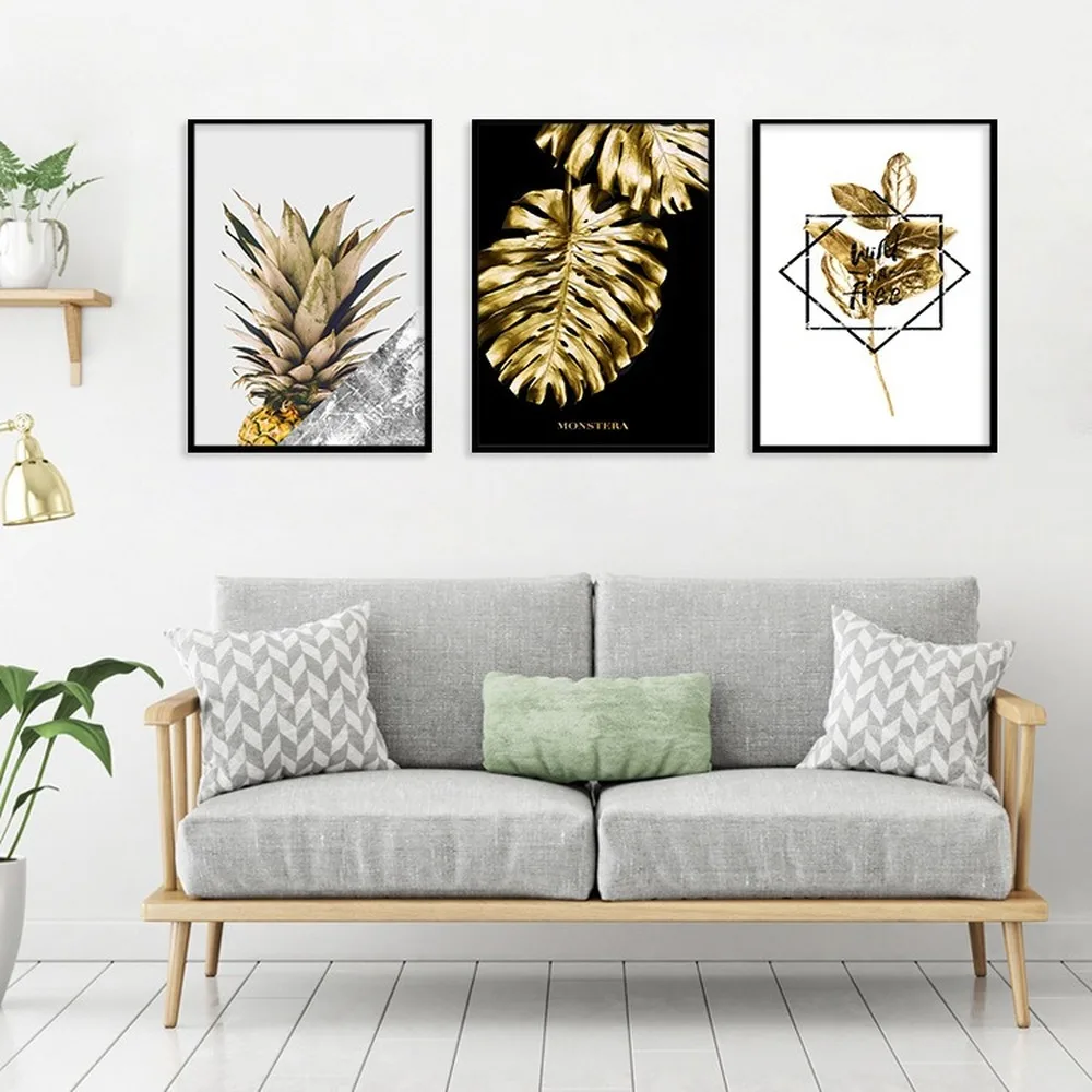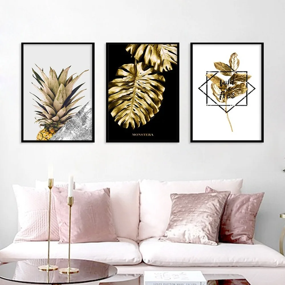 . (35% Rabatt) Billige Kaufen Golden Leaf Ananas Leinwand Malerei Englisch Brief Wasserdichte Poster Wand Bilder Für Wohnzimmer Cuadros Decoracion Salon Preise Online.