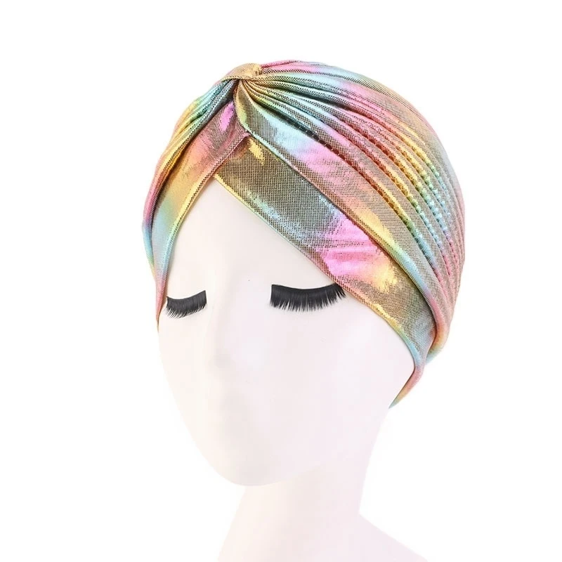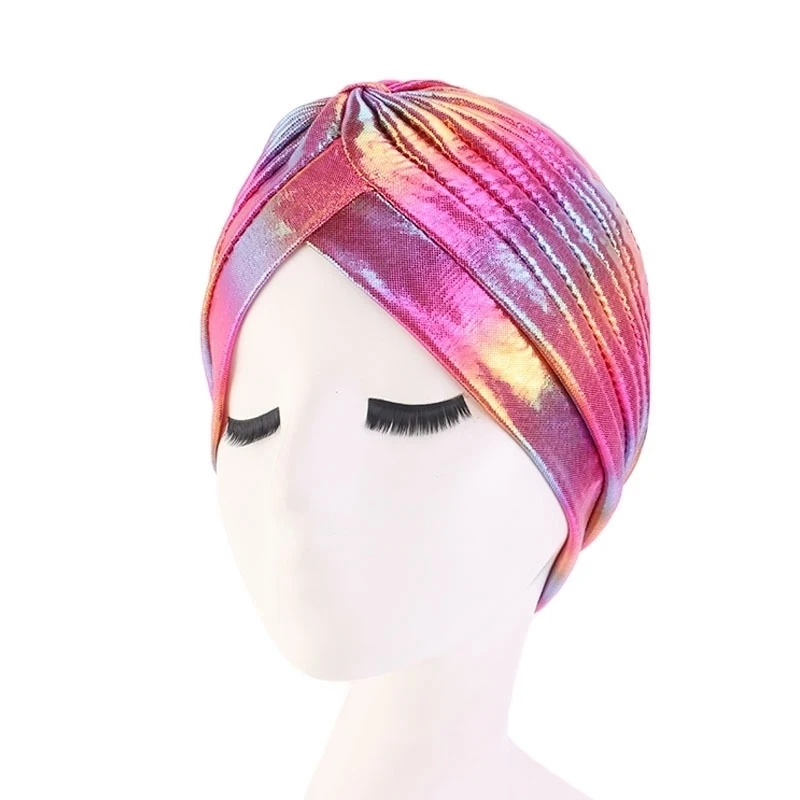 Special Offer Frauen Bunte Laser Haar Kappen Seidige Rüschen Metallic Turban Haar Abdeckung Zubehör Welle Caps Motorhaube Salon Hut Turban Schmuck Discount 39% Today!