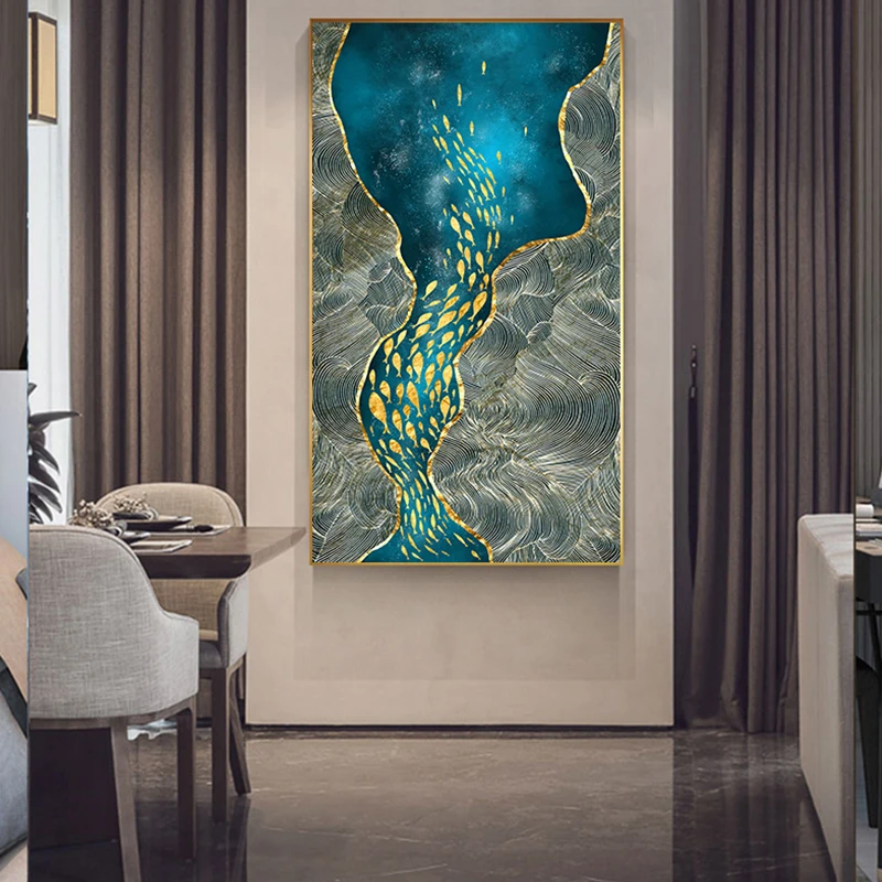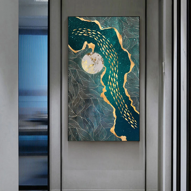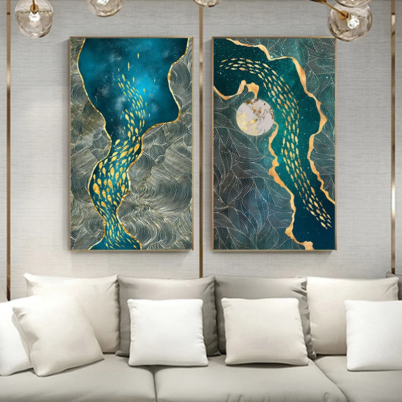 . (43% Rabatt) Kaufen Günstig Abstrakte Goldene Fisch Mond Malerei Moderne Gold Poster Drucken Decor Großen Wand Kunst Tableaux Für Wohnzimmer Schlafzimmer HD Cuadros Salon Preise Online.