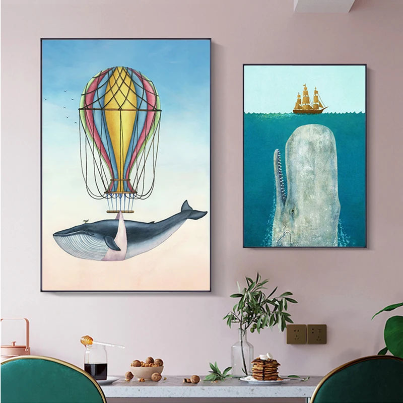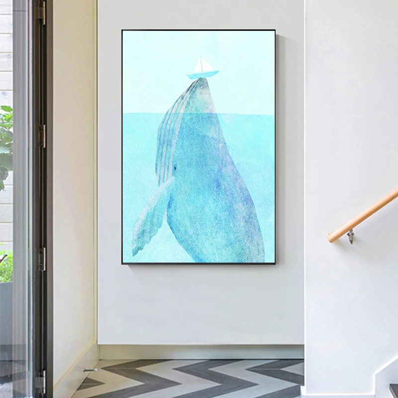 . (43% Rabatt) Billige Kaufen Nordic Sea Whale Serie Leinwand Malerei Schöne Wand Kunst Für Wohnzimmer Schlafzimmer Gang HD Cuadros Salon Cartoon Blau Poster Drucken Preise Online.