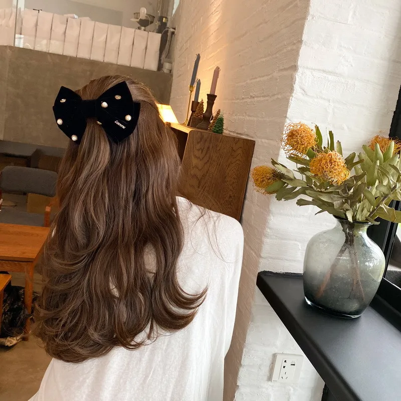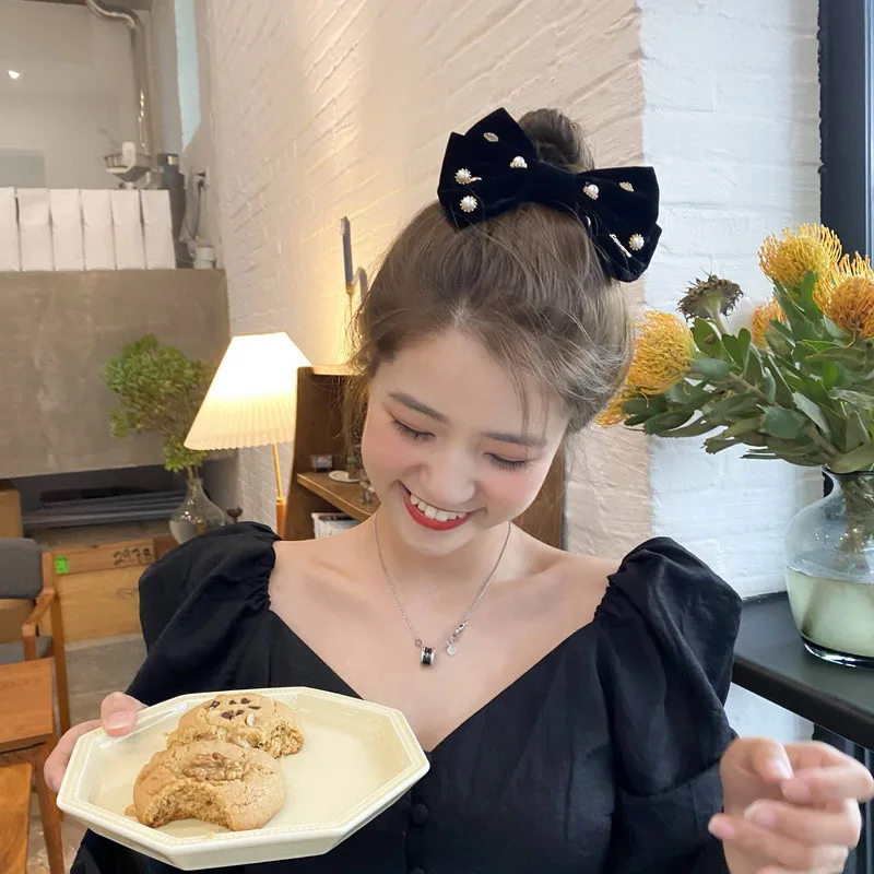 . (20% Rabatt) Günstige Kaufen AOMU Korea Perle Strass Bogen Haarnadel Einfache Gold Samt Bowknot Frühling Clip Haarklammer Für Frauen Süße Lolita Haar Zubehör Preise Online.