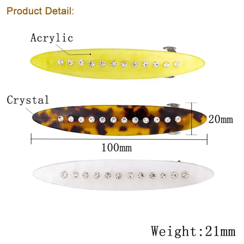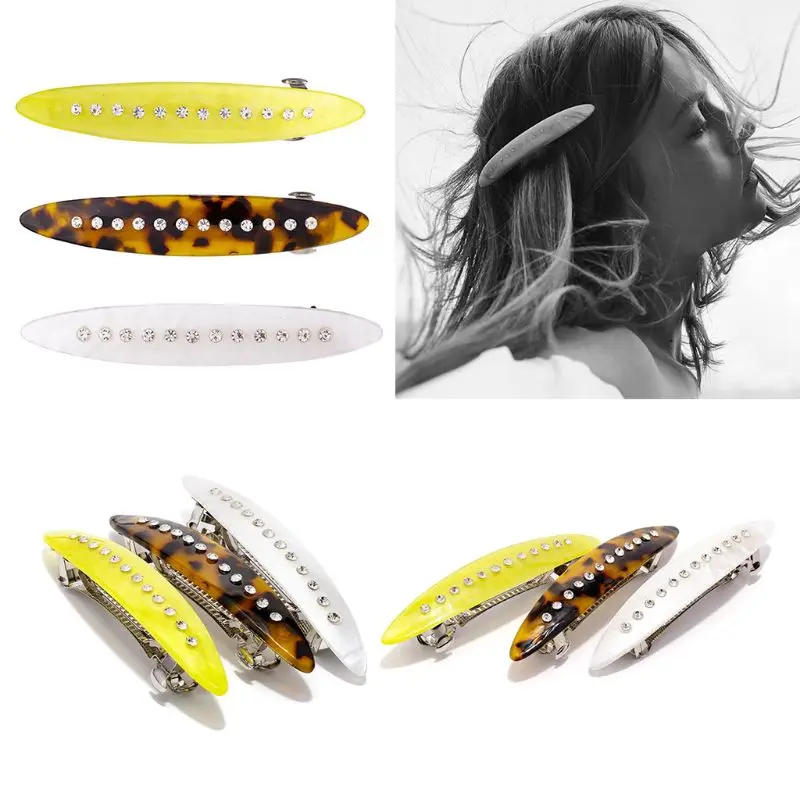 Special Offer 3 Teile/satz Frauen Geometrische Oval Form Acetat Haar Clip Leopard Strass Verziert Pferdeschwanz Frühling Clamp Glitter Snap Haarspange Discount 26% Today!