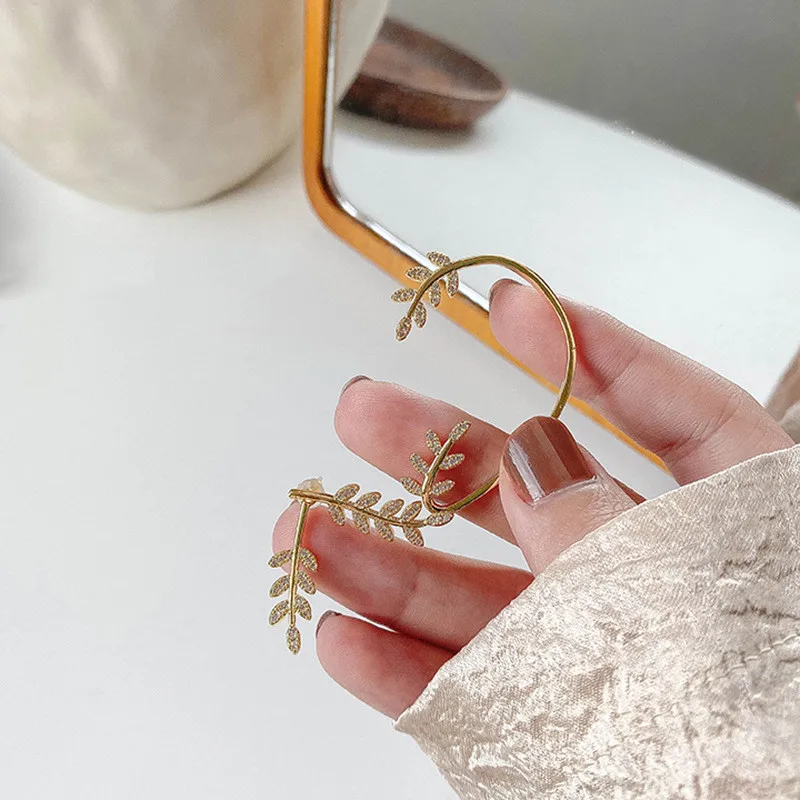 . (40% Rabatt) Günstige Kaufen Koreanische Frühling Sommer Neue Quaste Verlässt Ohrringe Temperament Lange Quaste Olive Leaf Kristall Ohr Knochen Clip Frauen CE2618 Preise Online.