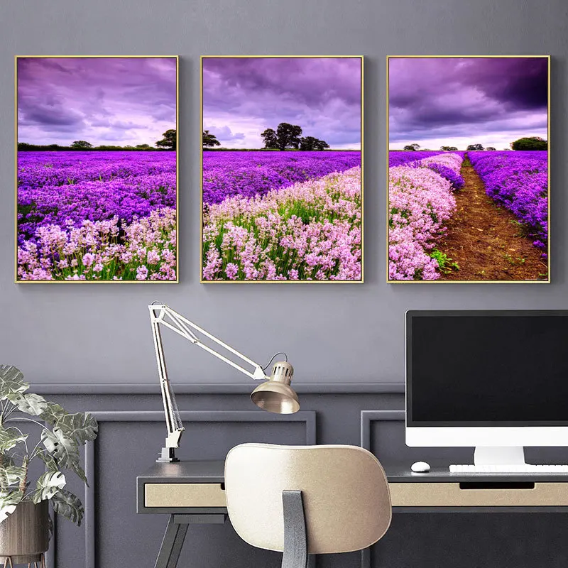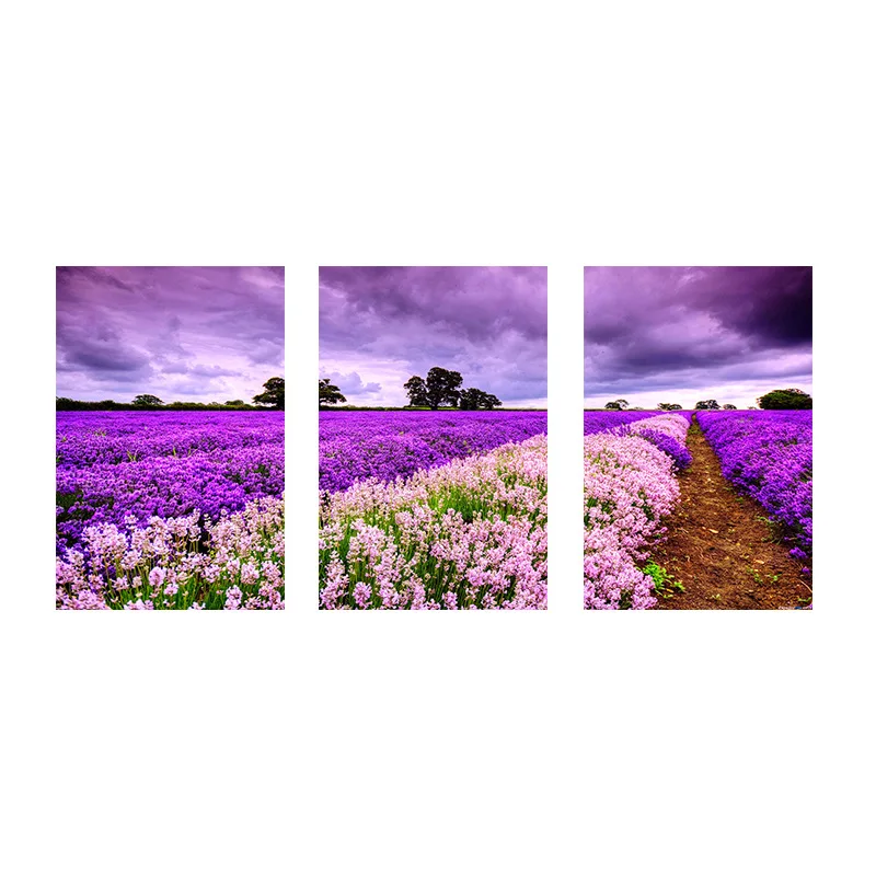 Special Offer Lila Lavendel Blume Bereich Landschaft Triple Dekorative Malerei Zu Hause Wohnzimmer Wandbild Rahmenlose Cuadros Decoracion Salon Discount 30% Today!