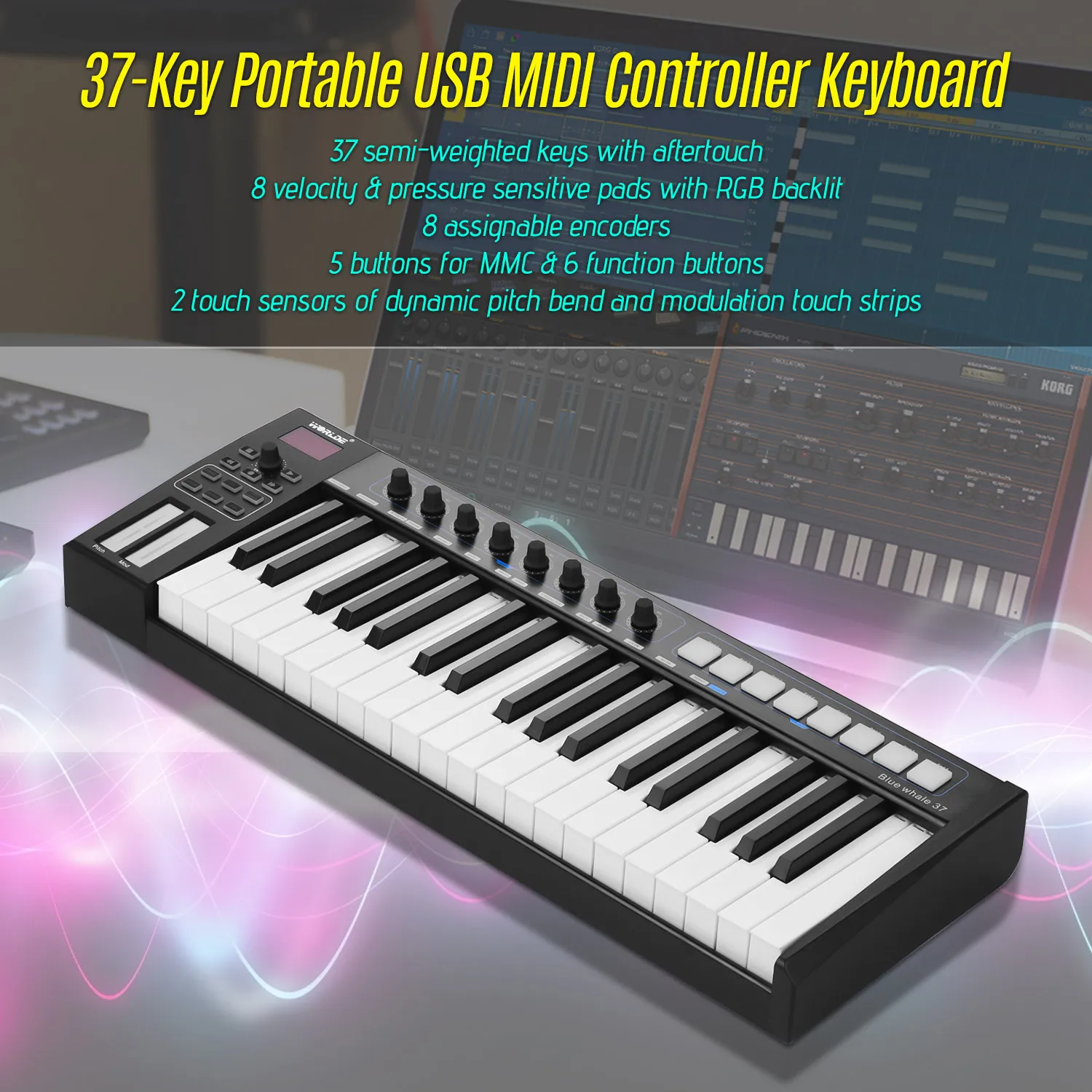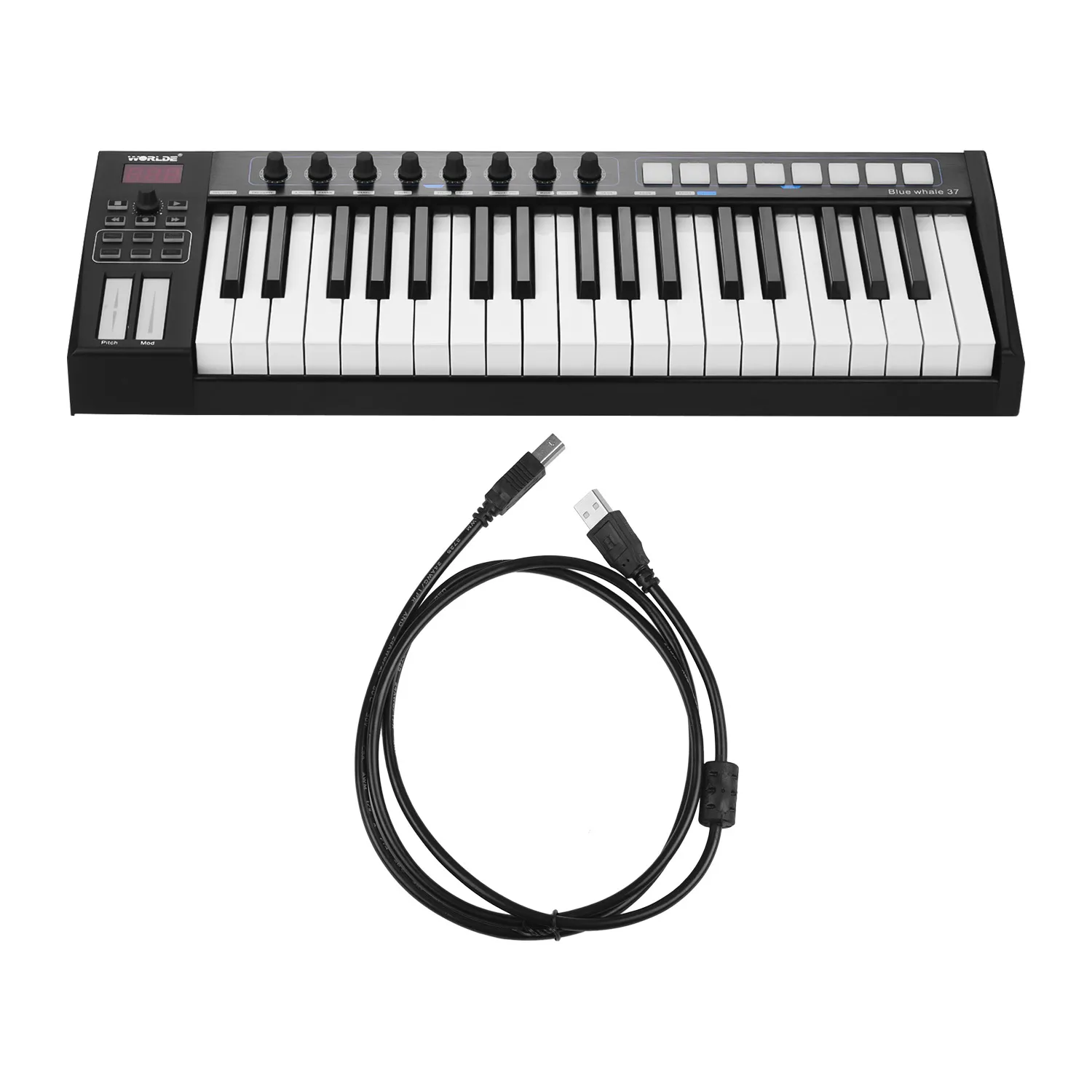 Special Offer 37/25 Schlüssel USB MIDI Controller Tastatur 37 Semi-gewichteten Tasten 8 RGB Backlit Trigger Pads LED Display Mit USB Kabel Discount 38% Today!