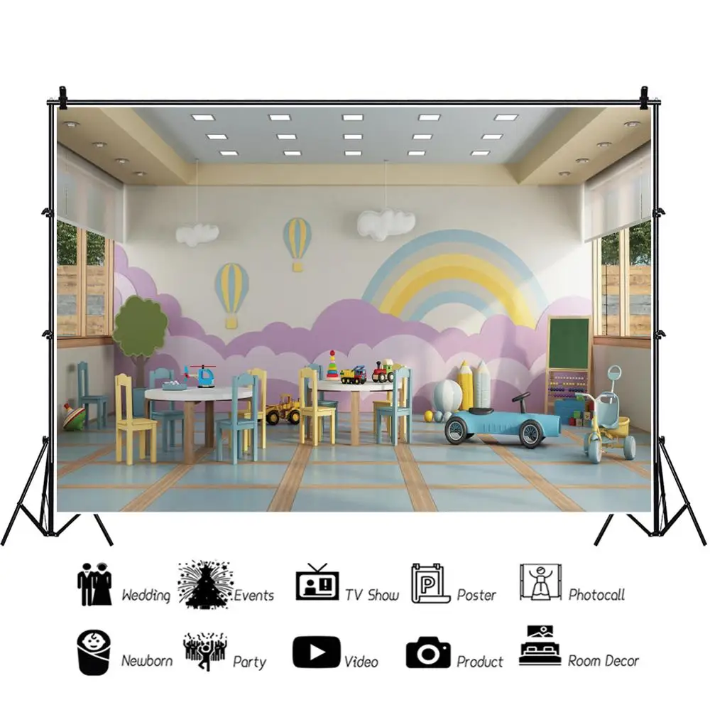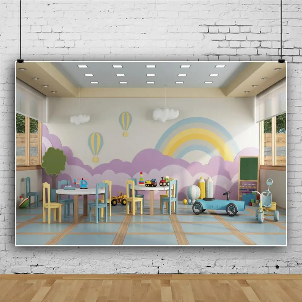 Special Offer Laeacco Kindergarten Innen Auto Schreibtisch Stuhl Regenbogen Hintergrund Baby Party Geburtstag Porträt Photo Hintergrund Für Foto Studio Discount 10% Today!
