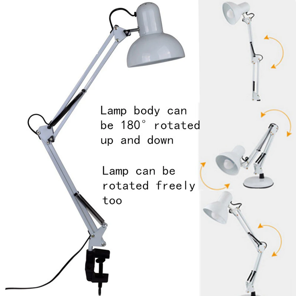 Special Offer EU/Us-stecker Flexible Schaukel Arm Clamp Montieren Lampe Büro Studio Home E27/E26 Weiß Tisch Schreibtisch Licht AC85-265V NEUE Geistige + ABS Discount 20% Today!