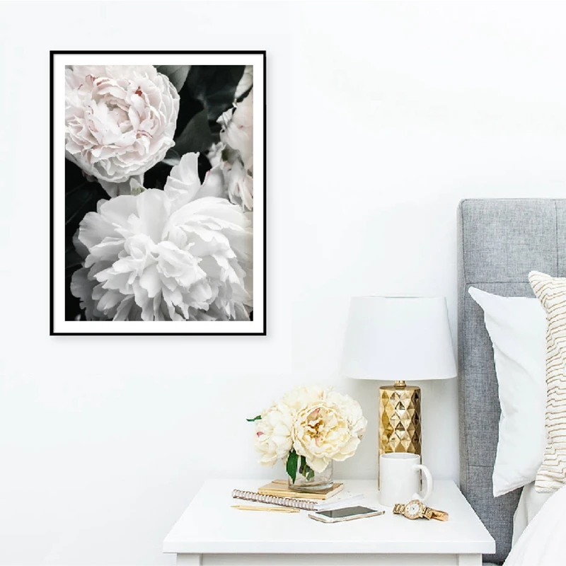 . (30% Rabatt) Billige Kaufen Weiße Pfingstrose Blume Druck Rose Floral Schlafzimmer Wand Kunst Leinwand Malerei Frau Schöne Zitat Poster Schönheit Salon Wand Dekor Zimmer Preise Online.