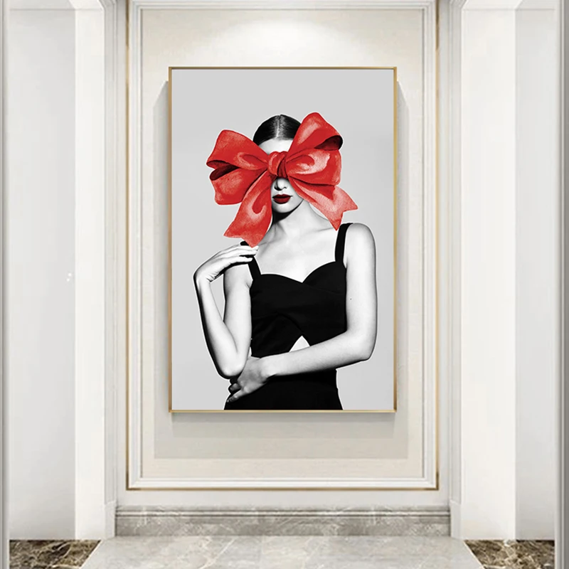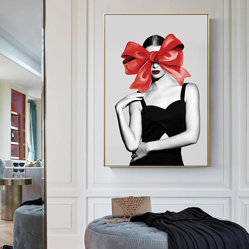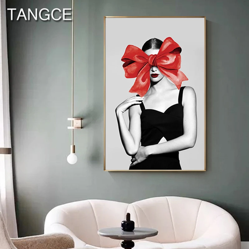 Special Offer Moderne Charakter Wand Kunst Abstrakte Sexy Rot Bogen Mädchen Malerei Tableaux Große Poster Druck Für Wohnzimmer Cuadros Salon Decoracion Discount 43% Today!