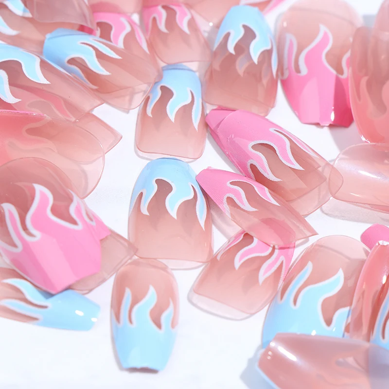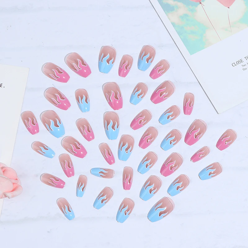 Special Offer 24 Stücke Super Neue Produkt Blaue Flamme Gefälschte Nägel Flache-Spitze Nagel Spitze Nebenstelle Auf Falsche Nägel Punk Salon Maniküre Dekoration Discount 45% Today!