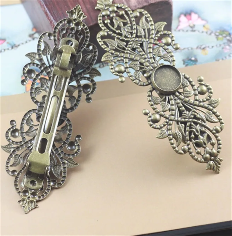 Special Offer 2 Stücke Kupfer Messing Hohl Filigrane Blume Frühling Haarspange Französisch Haar Clip Haarnadeln Runde Cabochon Basis 12mm DIY Headwear Handwerk Discount 20% Today!