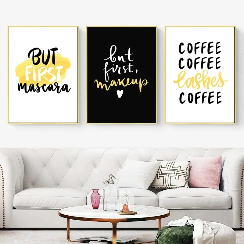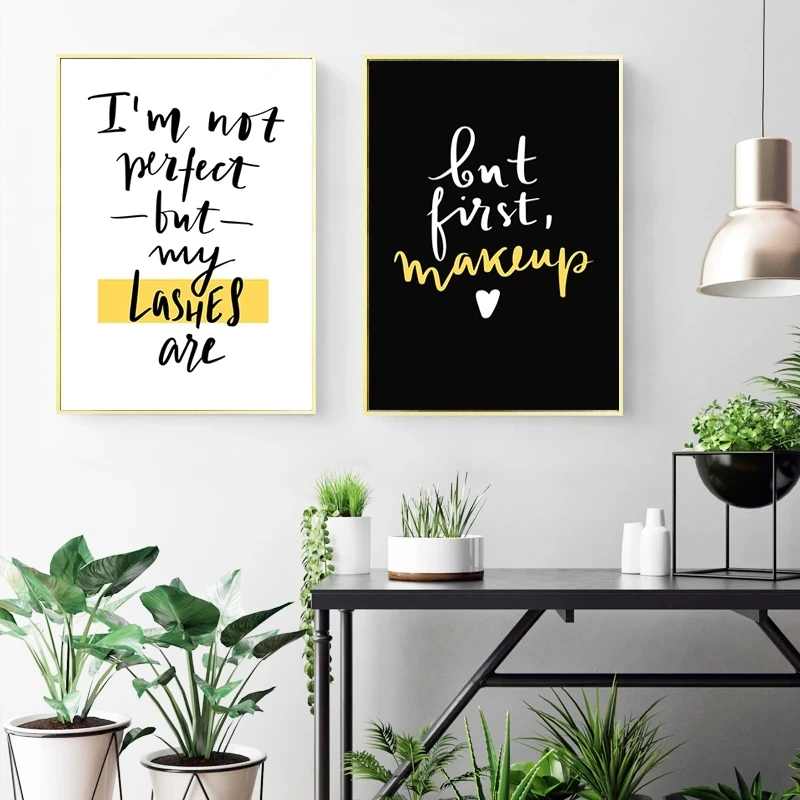 Special Offer Leinwand Malerei Schönheit Salon Wand Bild Gelb Make-Up Zitieren Kunstdruck Poster Wimpern Kaffee Für Wohnzimmer Decor Discount 30% Today!