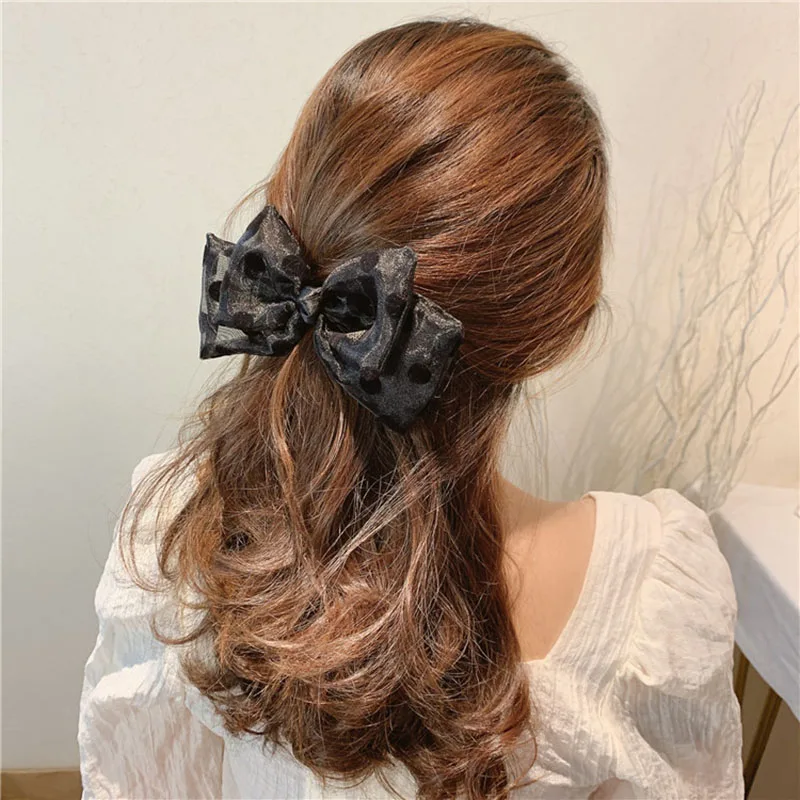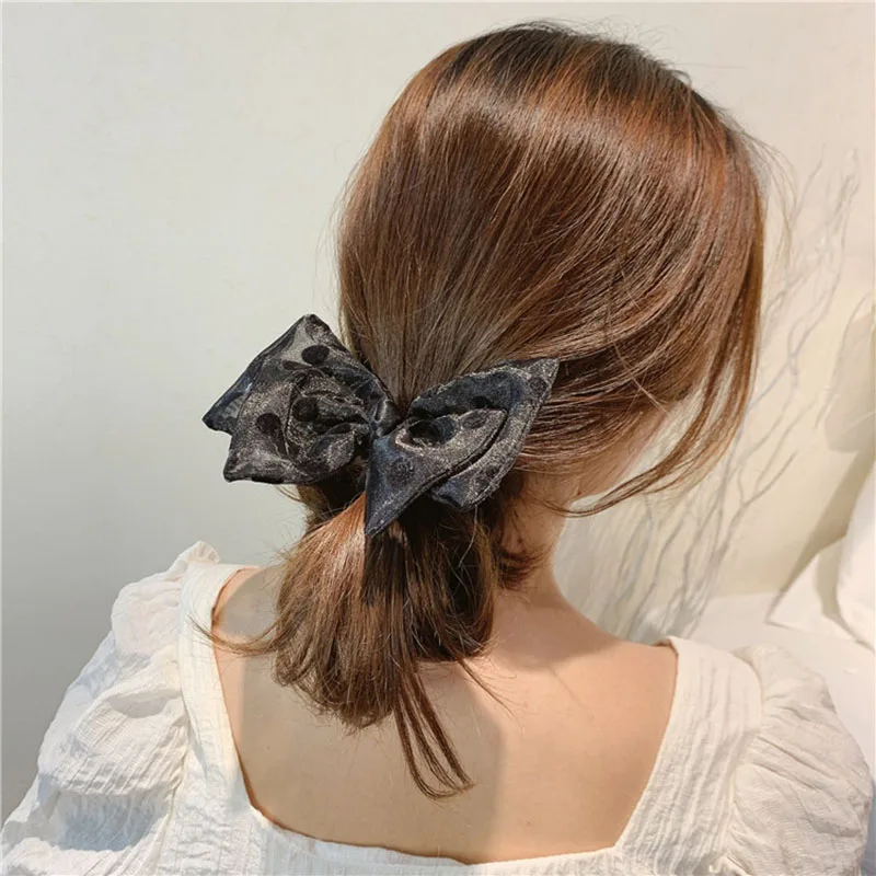 Special Offer Bogen Knoten Welle Punkt Chiffon Haar Seil Haar Frühling Schwarz Rosa Dot Bogen Clip Haar Gummi Scrunchies Haarnadel Elegante Für Frauen Mädchen Discount 36% Today!