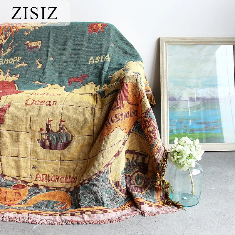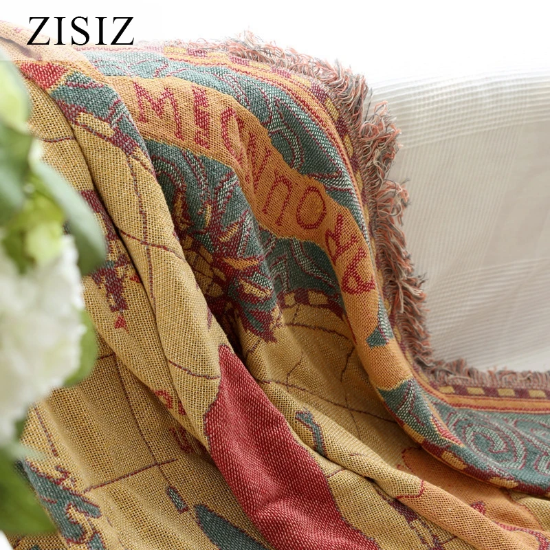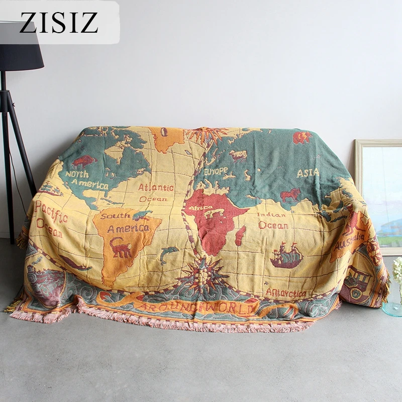 Special Offer ZISIZ Welt Karte Jacquard Baumwolle Decke Für Sofa Abdeckungen Dicke Decken Klavier Abdeckung Teppich AB-Seite Bettdecke 3-größen Bettdecke Discount 51% Today!