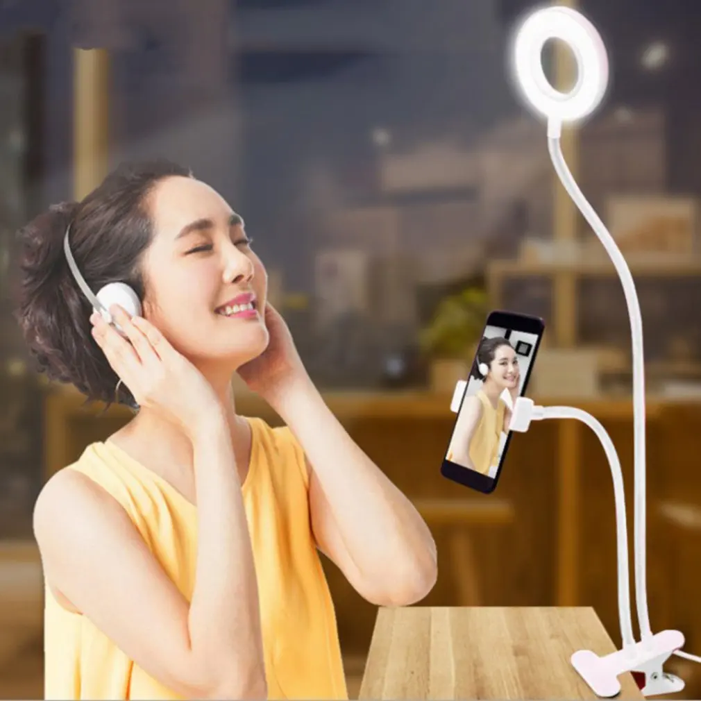 Special Offer Clip Auf Led Selfie Ring Licht Mit Handy Halter Flexible Dimmbar Machen Up Lampe Schreibtisch Tisch Lampe Foto Studio Für Live-Stream Discount 30% Today!